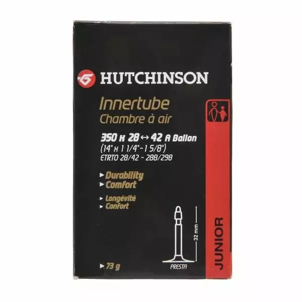 Cette chambre à air HUTCHINSON 350×28/42 à valve Presta 32 mm est destinée aux vélos enfants, avec des pneus de petites dimensions de type Ballon. Elle a la particularité de pouvoir être utilisée en basse pression, tout en offrant une très grande durabilité et une résistance importante aux crevaisons.