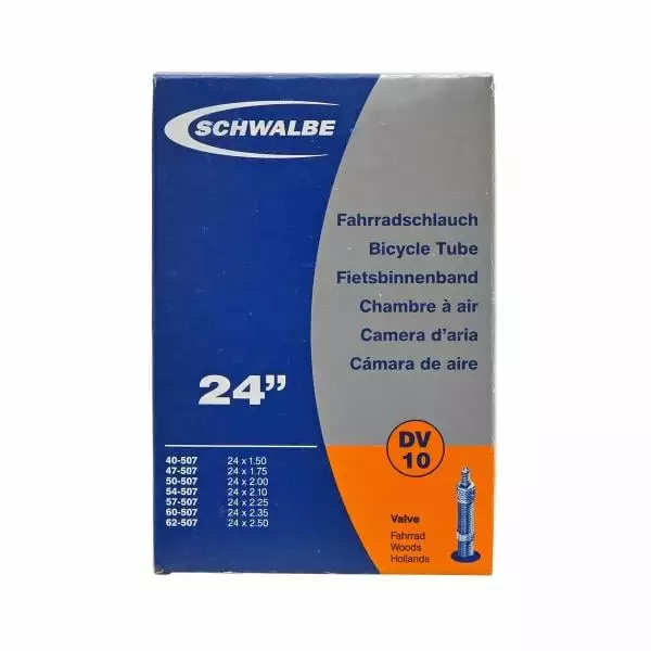 La chambre à air SCHWALBE N°10 24×1,50/2,50 Dunlop est un modèle pour les roues de 24 pouces des vélos d’enfant se démarquant par une très bonne conservation de la pression dans le temps grâce à l’utilisation de caoutchouc de qualité.