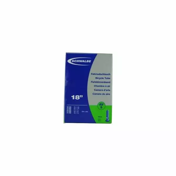 La chambre à air SCHWALBE N°5 18×1-3/8 / 1.75 Schrader un modèle pour les roues de 18 pouces des vélos d’enfant et des BMX.