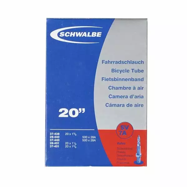 La chambre à air SCHWALBE N°7A 20×1,50/2,50 Schrader un modèle pour les roues de 20 pouces des vélos d’enfant et des BMX.