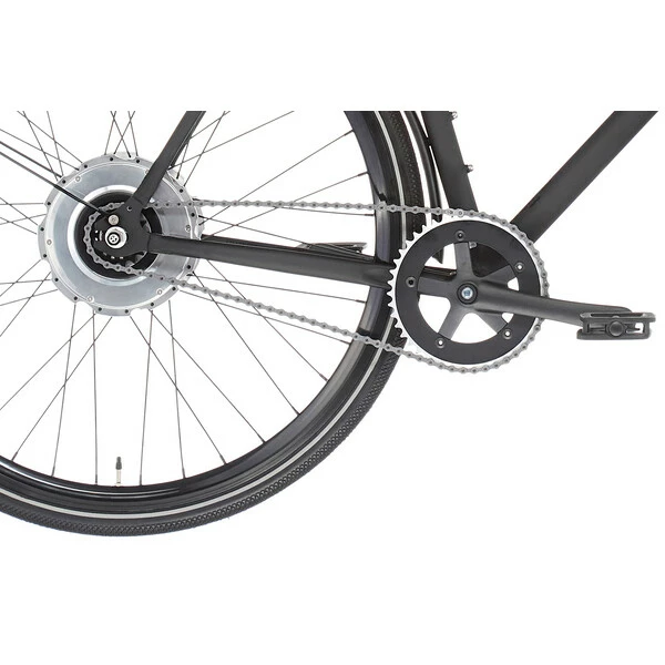 La principale caractéristique de ce vélo monovitesse se situe dans la roue arrière où se cache un moteur procurant une douce et agréable assistance électrique jusqu’à 25 km/h. La batterie de 160 Wh, qui assure une autonomie de 30 à 60 km, est directement intégrée dans le bloc moteur, tout comme le contrôleur et les différents capteurs. L’ensemble se pilote à l’aide de votre smartphone, via une appli dédiée.