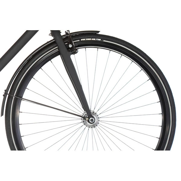 Enfin, ce vélo hyper élégant est également extrêmement fonctionnel. La fourche et le cadre possèdent des fixations qui accueillent garde-boue SKS Raceblade légers et élégants. afin de pouvoir rester parfaitement sec et propre lorsqu’il pleut tout en profitant d’un look minimaliste lorsqu’il fait beau.