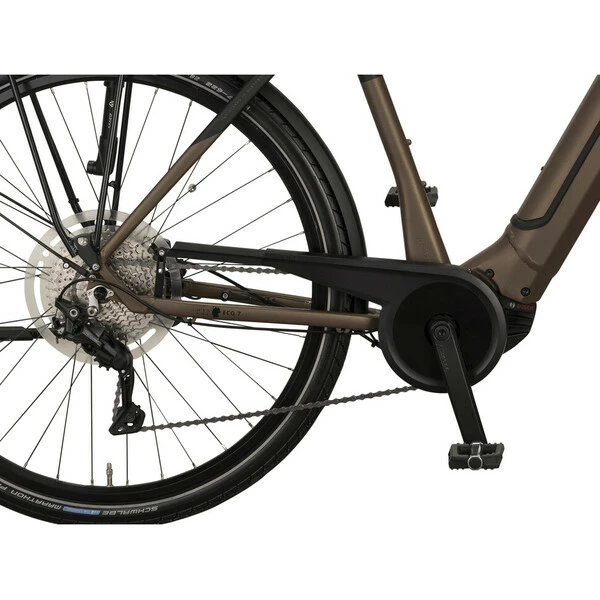 Côté motorisation, l’unité Bosch Performance Line CX délivre 250 watts de puissance et permet une conduite souple et harmonieuse. Avec ses 4 niveaux d’assistance et sa détection de changement de vitesse, elle est parfaitement adaptée au trafic urbain. Elle est associée à une batterie Bosch de 500 Wh positionnée sur le tube oblique. Fiable, la transmission Shimano Deore permet quant à elle d’affronter les différents reliefs sans trop forcer sur les pédales grâce à ses 10 vitesses.