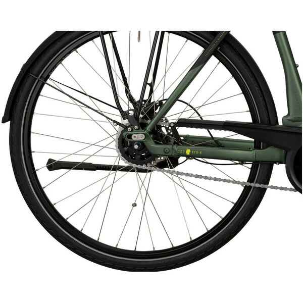 Côté motorisation, l’unité Bosch Performance Line délivre 250 watts de puissance et permet une conduite souple et harmonieuse. Avec ses 4 niveaux d’assistance et sa détection de changement de vitesse, elle est parfaitement adaptée au trafic urbain. Elle est associée à une batterie Bosch de 500 Wh positionnée sur le tube oblique. Fiable, la transmission Shimano Nexus 5 permet quant à elle d’affronter les différents reliefs sans trop forcer sur les pédales grâce à ses 5 vitesses.