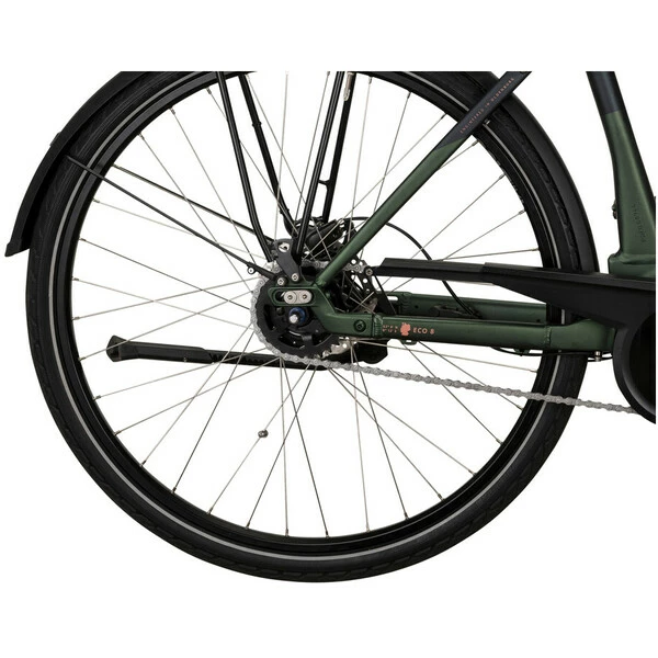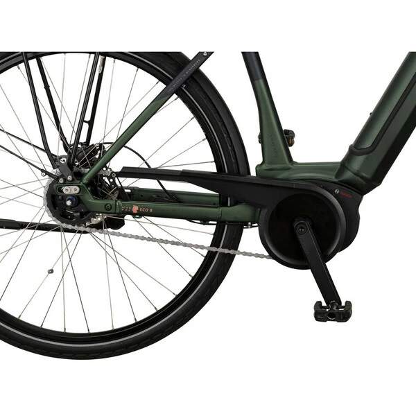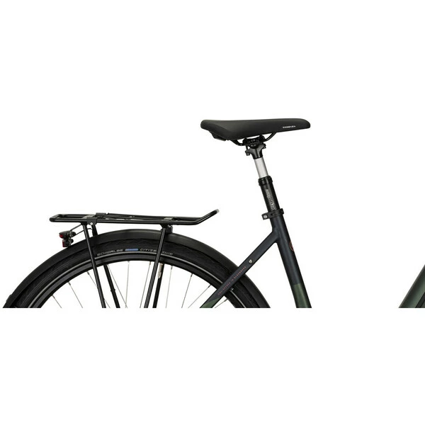 Côté motorisation, l’unité Bosch Performance Line délivre 250 watts de puissance et permet une conduite souple et harmonieuse. Avec ses 4 niveaux d’assistance et sa détection de changement de vitesse, elle est parfaitement adaptée au trafic urbain. Elle est associée à une batterie Bosch de 500 Wh positionnée sur le tube oblique. Fiable, la transmission Shimano Nexus 5 permet quant à elle d’affronter les différents reliefs sans trop forcer sur les pédales grâce à ses 5 vitesses.