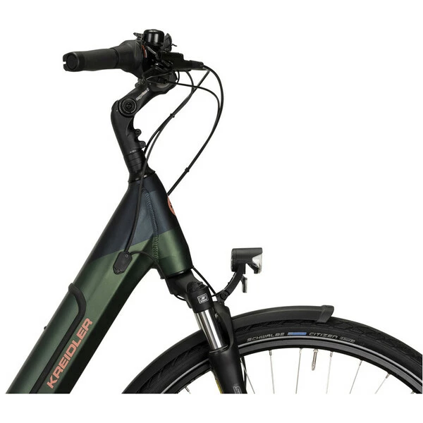 Sur ce modèle, on retrouve également des freins à disque hydrauliques Shimano MT200 mordants pour un bon contrôle du vélo et une sécurité supérieure. Un éclairage complet, un carter de chaîne, des garde-boues, un porte-bagages, des poignées ergonomiques et une béquille réglable complètent même la très belle panoplie du Kreidler.