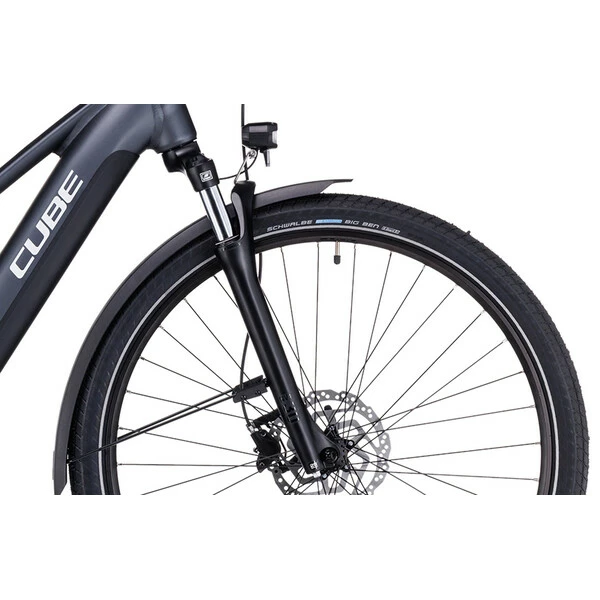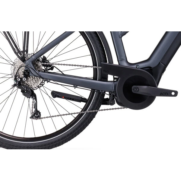 Ce superbe vélo électrique est également équipé d’une fourche suspendue SR Suntour de 63 mm de débattement (ressort acier) avec blocage, de freins à disque hydrauliques puissants offrant un freinage précis et fiable quelle que soit la météo, et d’une transmission Shimano 9 vitesses très polyvalente qui vous permet de vous lancer dans tous types de parcours et de venir à bout des côtes sereinement.