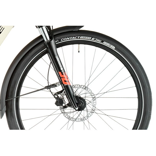 Conçu autour d’un cadre en aluminium 6061 garantissant solidité, longévité et confort, ce vélo de voyage reçoit une fourche SR Suntour de 63 mm de débattement idéale pour absorber les petits chocs et les aspérités des chemins et chaussées défoncées.