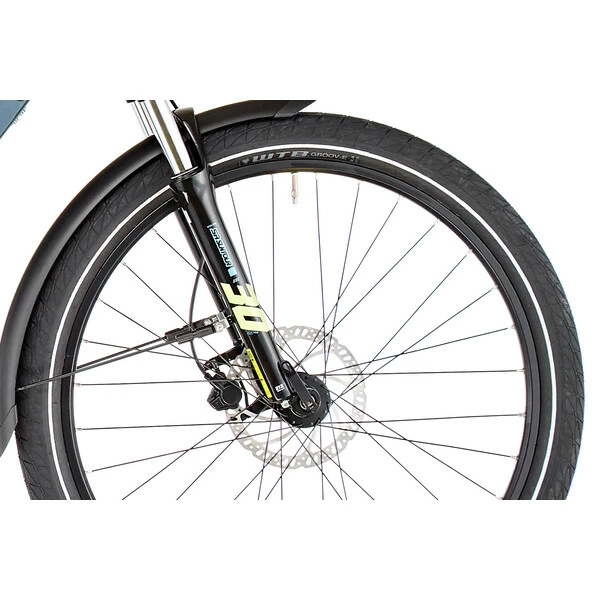 Conçu autour d’un cadre en aluminium 6061 garantissant solidité, longévité et confort, ce vélo de voyage reçoit une fourche SR Suntour de 65 mm de débattement avec blocage idéale pour absorber les petits chocs et les aspérités des chemins et chaussées défoncées.