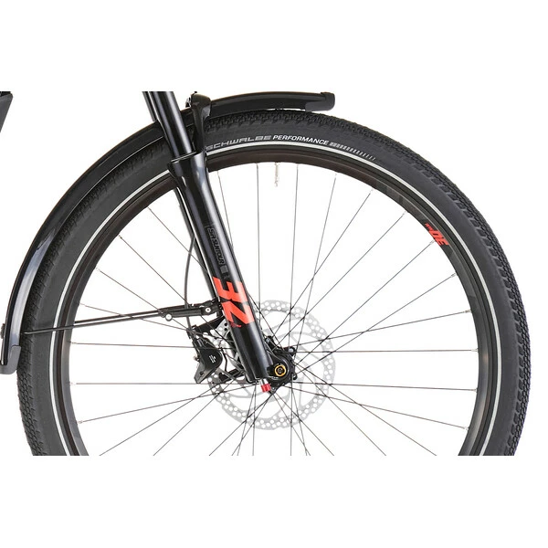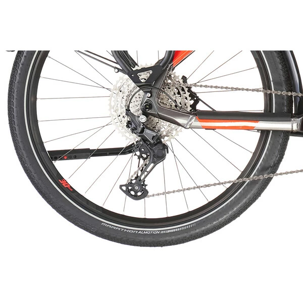 Côté transmission, Haibike a opté pour le groupe Shimano Deore 11 vitesses réputé pour sa fiabilité et sa polyvalence, qui permettra de s’aventurer sur les chemins escarpés. Pour sécuriser le tout, le Trekking 9 est doté de freins à disques hydrauliques Shimano qui offrent un freinage à la fois constant et puissant.