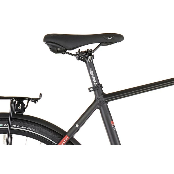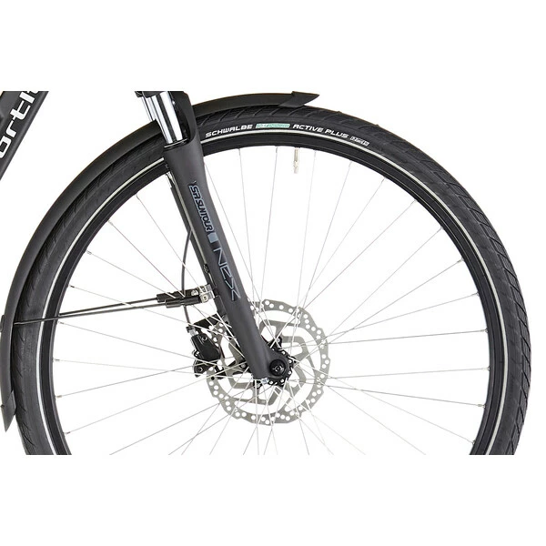 Il est doté de composants très résistants, notamment une transmission Shimano, une fourche suspendue Suntour, un éclairage LED et des pneus très roulants Schwalbe Energizer. En choisissant des composants légers et en plaçant le moteur relativement bas sur le cadre du vélo, la marque Ortler a réussi à équilibrer parfaitement la répartition du poids et donc à vous garantir une stabilité sans failles.