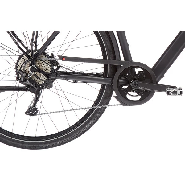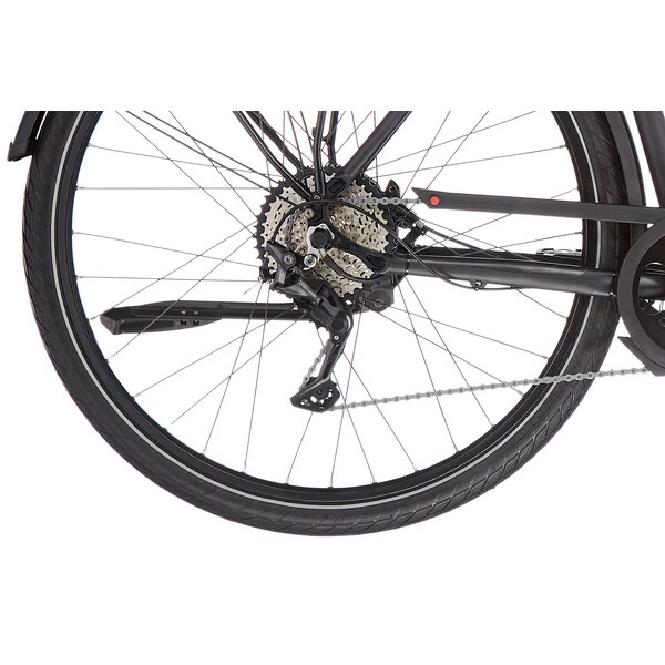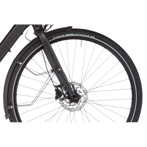 Le reste de l’équipement est à la hauteur, avec des pneus Schwalbe Energizer à flancs réfléchissants, des poignées Ergon GP1, une potence réglable, ainsi qu’une selle Royal Milo Plus incroyablement confortables, une béquille arrière, un carter de chaîne, un porte-bagages arrière, des garde-boues et un jeu d’éclairage signé Herrmans / Busch&Müller.