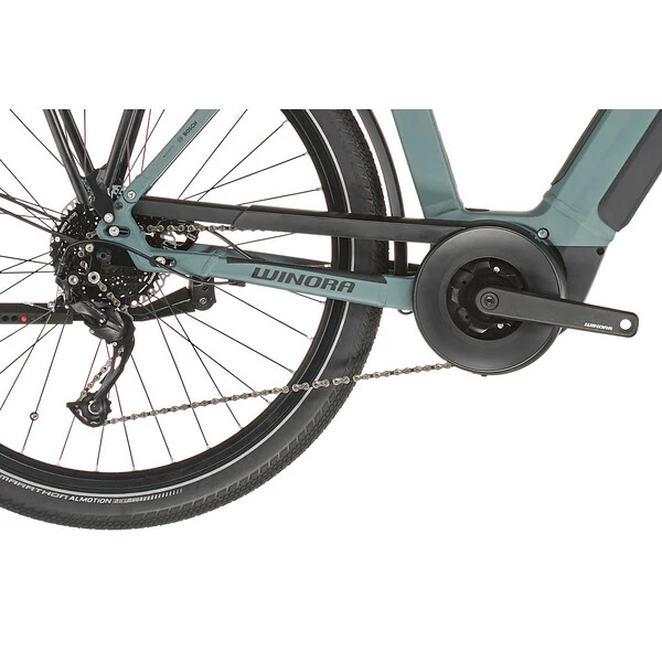 Sur ce modèle, on retrouve également des freins à disque hydrauliques Tektro sécurisants, pour un excellent contrôle du vélo. Un éclairage complet, un carter de chaîne, des garde-boues, un porte-bagages et une béquille réglable complètent même la très belle panoplie du WINORA. Un vélo qui a tout pour lui !