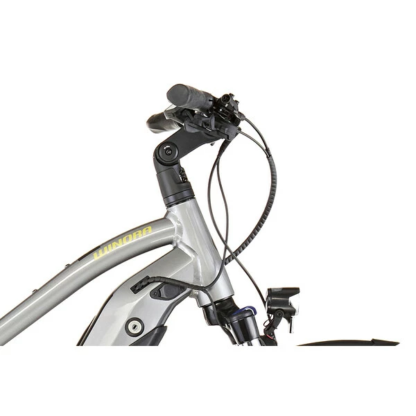 Sur ce modèle, on retrouve également des freins à disque hydrauliques Shimano MT400 mordants, pour un excellent contrôle du vélo. Un éclairage complet, un carter de chaîne, des garde-boues, un porte-bagages, des poignées ergonomiques et une béquille réglable complètent même la très belle panoplie du WINORA. Un vélo qui a tout pour lui !
