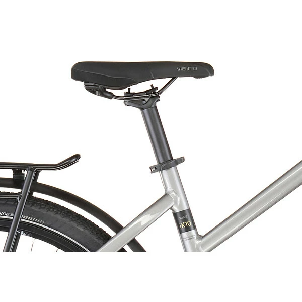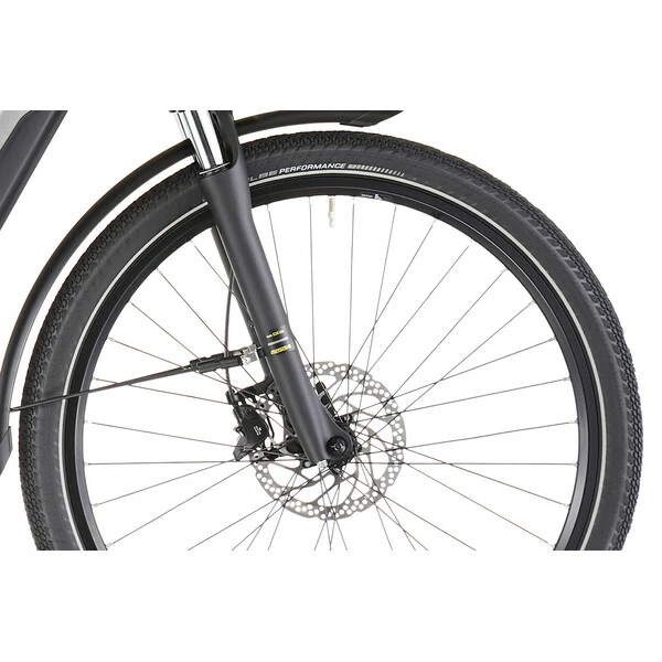 Le cadre présente une géométrie équilibrée et confortable. Doté d’une fourche suspendue SR Suntour avec système de blocage, il gomme les aspérités de la route et vous fait oublier les kilomètres passés sur la selle, tandis que les roues de 27,5″ offrent le compromis idéal entre stabilité, adhérence, confort et rendement.