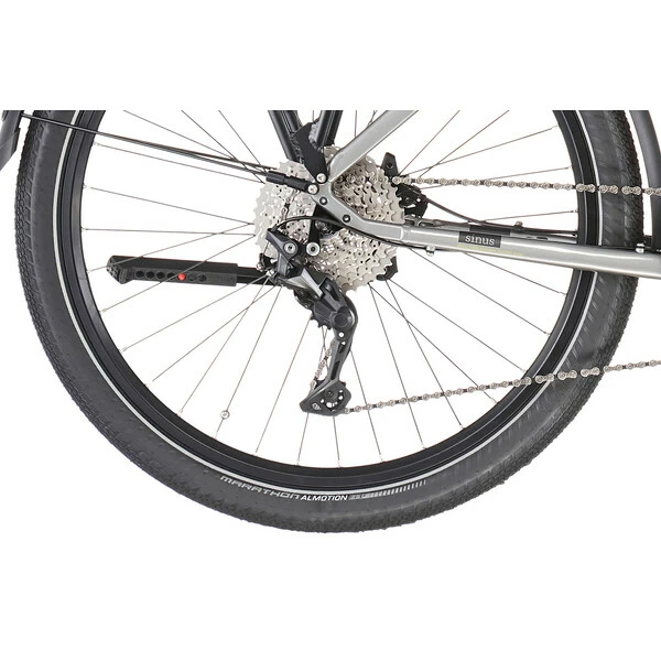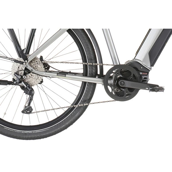 Côté motorisation, le Sinius embraque l’unité Performance CX, la plus puissante de la gamme Bosch,avec un couple maximal de 75 Nm. Capable d’avaler les pentes les plus raides, ce moteur intelligent ajuste sa puissance en fonction de la pression exercée sur les pédales. Elle est associée à une batterie Bosch 500 Wh totalement intégrée au cadre. Fiable et polyvalente et précise, la transmission Shimano Deore permet quant à elle d’affronter tous les reliefs sans trop forcer sur les pédales grâce à ses 10 vitesses.