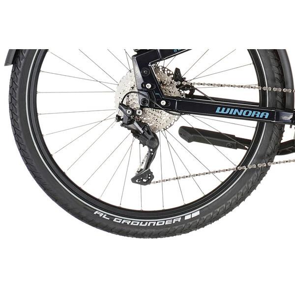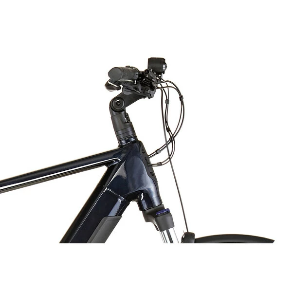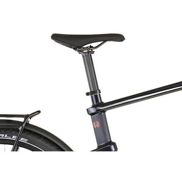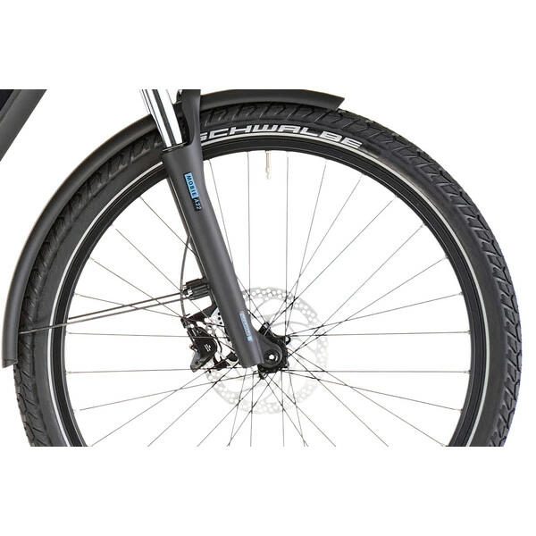 Côté confort, la fourche SR Suntour Mobie A32 offre 75 mm de débattement et gomme ainsi efficacement les aspérités de la route. Un équipement de très belle facture comprenant un système complet d’éclairages, un porte-bagage arrière, un kit de garde-boue ou encore une béquille réglable viennent compléter avantageusement ce vélo.