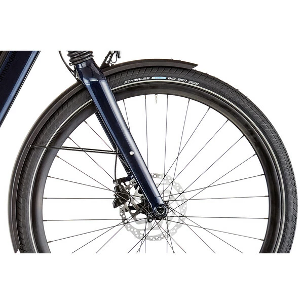 Les composants ont été sélectionnés dans une optique de simplicité et de fiabilité, notamment avec une transmission par moyeu à vitesses intégrées Shimano Nexus 8. Ce système permet ainsi de changer le rapport de vitesses par simple action sur la manette, et ce que vous soyez en train de pédaler, en roue-libre, ou à l’arrêt au feu rouge. Il est combiné à une courroie Gates Silencieuse, propre et pratiquement sans entretien, en faisant la solution idéale pour les déplacements urbains au quotidien.