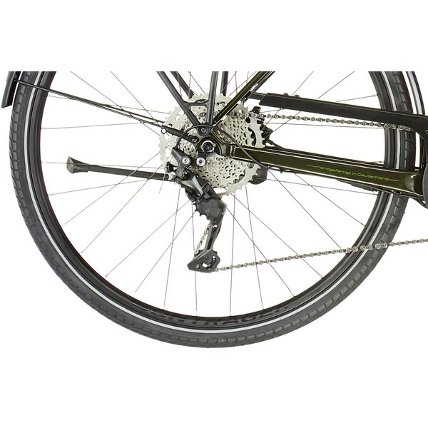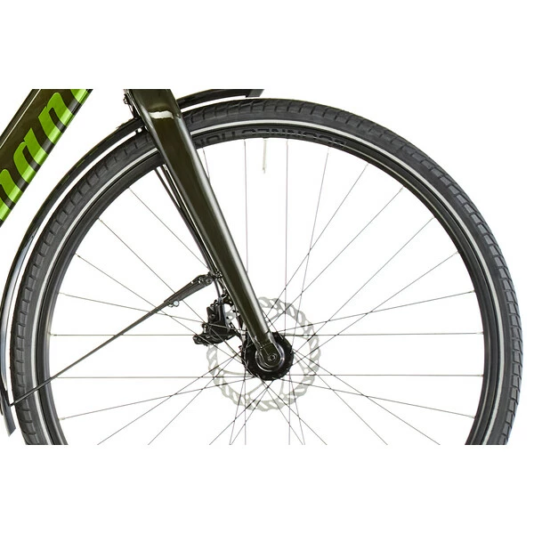 Disposant d’un moteur logé dans la roue arrière et d’une batterie intégrée dans le tube inférieur, le 365 permet de combiner confort de l’assistance électrique et le look d’un vélo traditionnel. Ce moteur de 40 Nm associé à une batterie de 250 Wh vous permettra d’envisager sereinement vos déplacements urbains quotidiens pour une autonmie maximum de 60 km. L’ensemble est contrôlé via une télécommande. Les LED vous donnent des informations sur l’état de la batterie et le niveau d’assistance électrique.