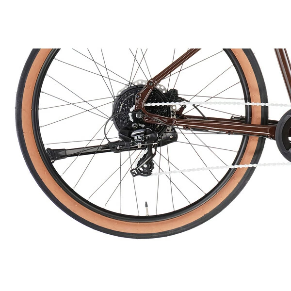 Cette assisance est couplée à une transmission Shimano avec une cassette 8 vitesses calibrée pour assurer une bonne réactivité au démarrage et affronter sereinement de nombreux reliefs. Pour maîtriser l’ensemble, Kona a doté le Dew de freins à disque Tektro garantissant un pilotage sûr et confortable en toutes circonstances.