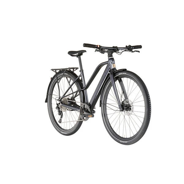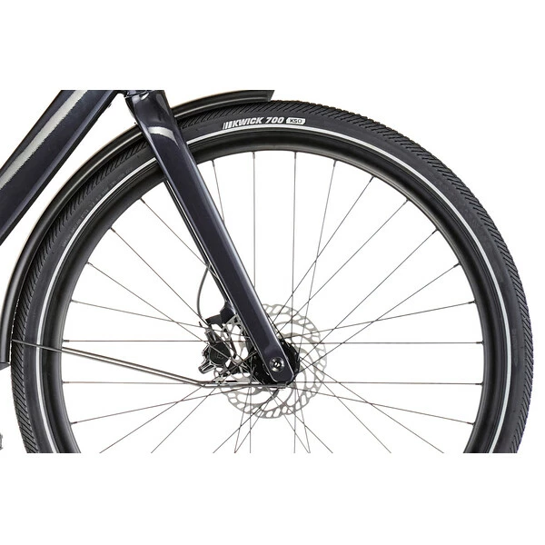 Il est conçu autour d’un cadre en aluminium et une fourche carbone garantissant à la fois un grand confort et un bon rendement. Côté assistance électrique, le Vibe combine une batterie de 248 W dans le down tube et reçoit un moteur Ebikemotion intégré dans le moyeu de la roue arrière. Le cœur du Vibe, le moteur du moyeu arrière est l’élément clé du concept Enough Power. Le système moteur sophistiqué fournit une assistance souple et fiable suffisante selon des niveaux prévus pour faciliter votre pédalage, rendre vos sorties plus accesibles sans que ce ne soit trop facile. De plus, le moteur se trouvant dans le moyeu, vous profiterez d’un pédalage sans résistance lorsque le Vibe ne fournit pas d’assistance. L’algorithme sophistiqué de simulation de couple du Vibe calcule votre puissance transmise aux pédales pour appliquer davantage de puissance quand vous l’attendez et conserver l’énergie quand vous roulez facilement. Par ailleurs, il est possible de connecter son vélo à son smartphone avec l’application Ebikemotion afin d’avoir un panel d’information très complet. Ajoutez un support pour votre téléphone portable et repérez-vous facilement dans les rues grâce au système de navigation et aux cartes hors ligne inclus.