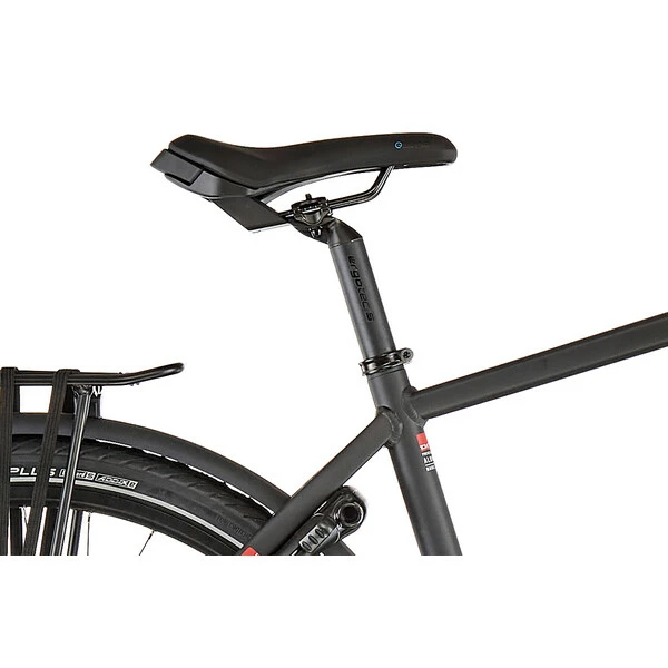 L’équipement est à la hauteur avec des pneus Schwalbe Energizer Plus combinant faible résistance au roulement, très bonne adhérence et grand confort, un éclairage avant LED Busch & Müller, un porte-bagages robuste Racktime, un antivol intégré et des détails de haute qualité tels que des poignées Ergo, ainsi qu’une selle confortable Selle Royal E-zone.