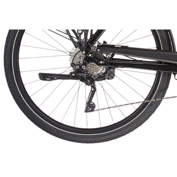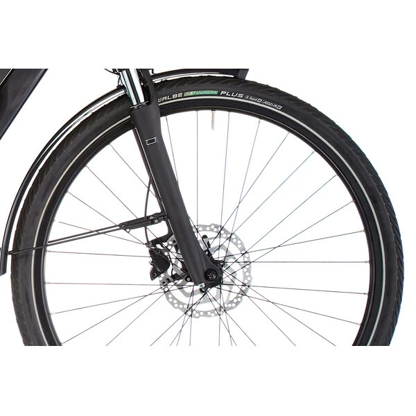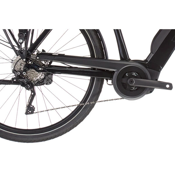 Il est aussi doté de composants très résistants, notamment une transmission Shimano Deore 9 vitesses, une fourche suspendue Suntour confortable, un éclairage Led et des pneus très roulants Schwalbe Energizer. En choisissant des composants légers et en plaçant le moteur relativement bas sur le cadre du vélo, la marque Ortler a réussi à équilibrer parfaitement la répartition du poids et donc à vous garantir une stabilité sans failles.