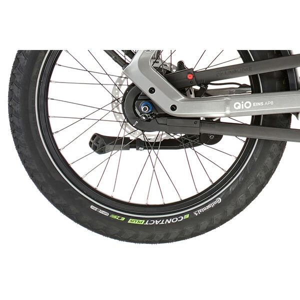 Pour une conduite ergonomique, la tige de selle est réglable en hauteur sans outils. Tout comme la potence by.schulz, qui peut même être tournée de 90° grâce à la fonction « Speedlifter Twist », afin de pouvoir ranger le vélo à la cave ou dans l’appartement pour gagner de la place. Avec le système d’éclairage LED, la béquille latérale et les garde-boue, le EINS est le vélo électrique idéal pour tous ceux qui aiment utiliser le vélo comme substitut de voiture en ville et qui n’ont pas beaucoup d’espace, ou pour tous ceux qui ont simplement envie d’un vélo électrique compact.