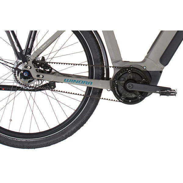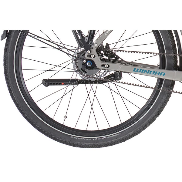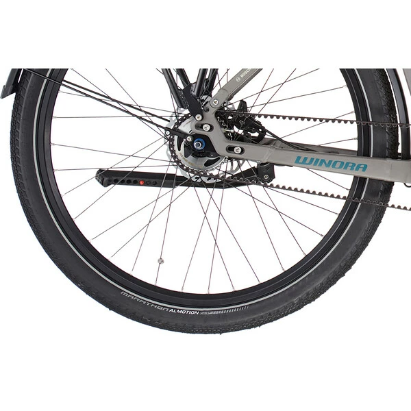 Sur ce modèle, on retrouve également des freins à disque hydrauliques Shimano M410 mordants pour un excellent contrôle du vélo. Un éclairage complet, un carter de chaîne, des garde-boues, un porte-bagages, des poignées ergonomiques et une béquille réglable complètent même la très belle panoplie du WINORA. Un vélo qui a tout pour lui !