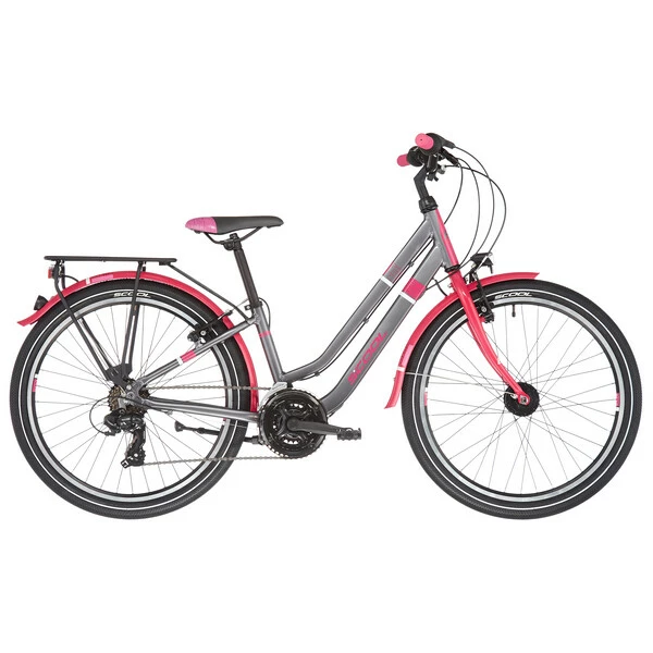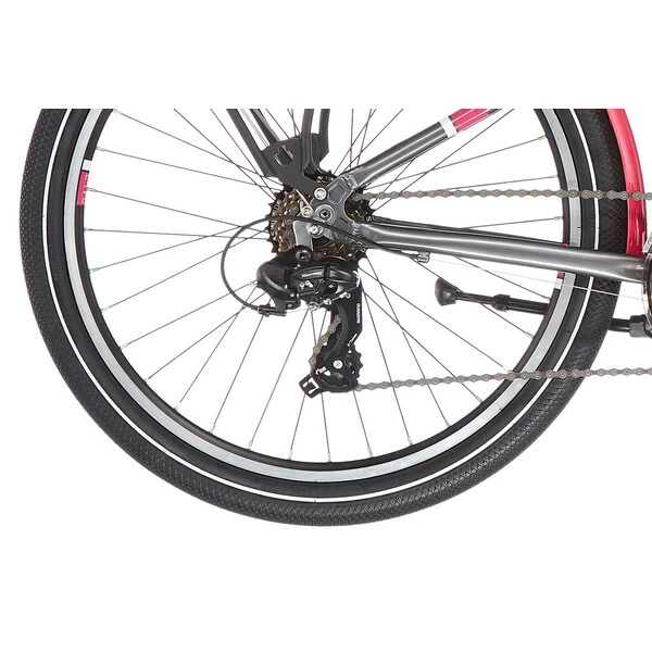 Conçu autour d’un cadre en aluminium, stable et très facile à enjamber – un vrai plus en termes de sécurité lorsque l’on doit s’arrêter au feu rouge ou aux stops -, il reçoit dans cette version une transmission Shimano 3×7 offrant des changements de vitesses précis et fiables et permettant d’affronter tout type de profil. Les freins V-brake ProMax garantissent quant à eux un freinage efficace par tous les temps.