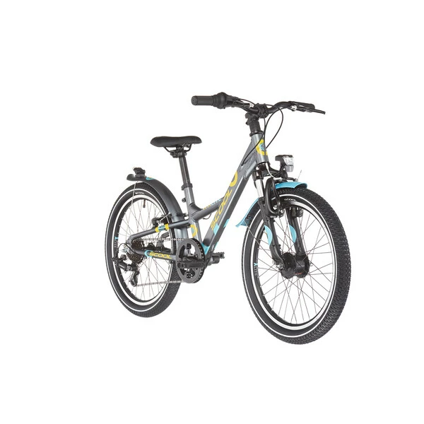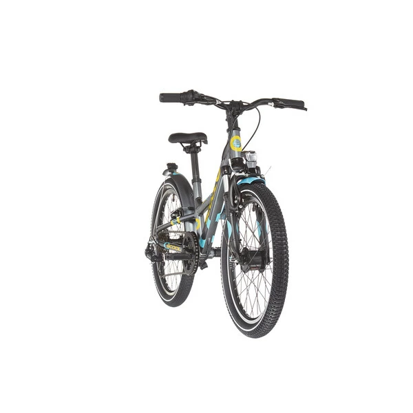 Ce vélo pour enfant propose un cadre en aluminium robuste et une fourche à suspension qui assurent un plaisir de conduite durable. Les freins sur jante adhérents sur les roues avant et arrière fonctionnent de manière fiable en cas de besoin. Les pneus 20 pouces légèrement profilés offrent une traction suffisante sur différentes surfaces.