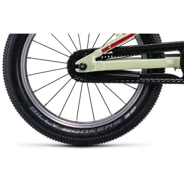 Les pneus offrent toute l’adhérence, le confort et la robustesse d’un VTT pour adulte, mais dans une version compacte. Le carter de chaîne protège les vêtements mais également les petites jambes, tandis que le garde-boue arrière, au look cool inspiré du motocross, réduit les éclaboussures provenant de la roue arrière.