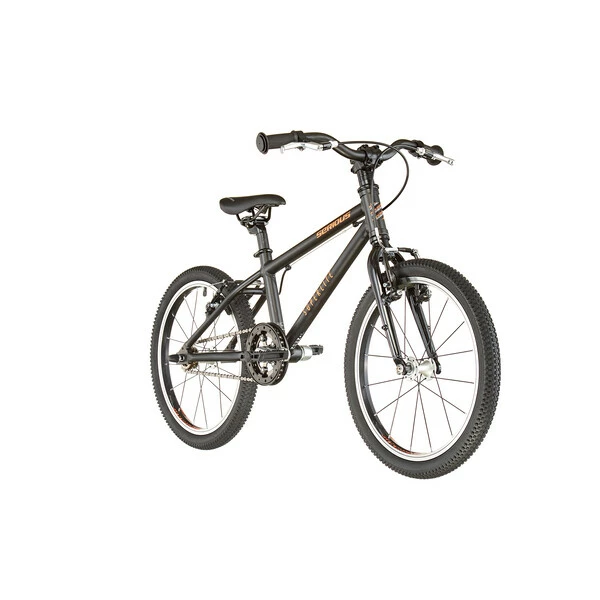 Conçu autour d’un cadre en aluminium, à la fois léger, robuste et maniable, il est équipé de pneus 18″ très accrocheurs, d’un guidon Rizer Bar, et des roues solides : un vrai vélo de grand ! Il présente des freins V-Brake avec des leviers spécifiques pour les petites mains, pour un contrôle et une sécurité sans faille.