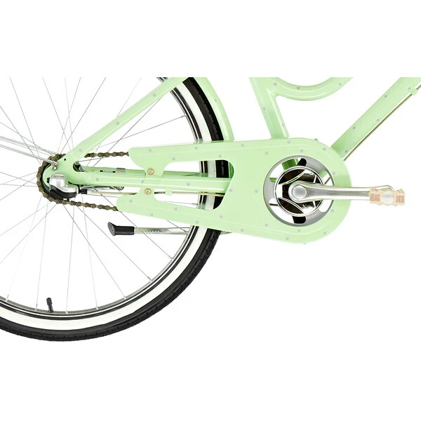 Pour ce modèle, la marque a mis l’accent sur la sécurité et la simplicité d’utilisation. Il est doté de composants fiables tel que le moyeu intégré Shimano Nexus 3 vitesses, la transmission parfaite pour les trajets des petits en ville et nécessitant très peu d’entretien. Le Mini Molly reçoit également des périphériques de qualité, à l’image de la selle à ressorts, ou encore du large guidon coudé monté de poignées Creme Gummy grips.