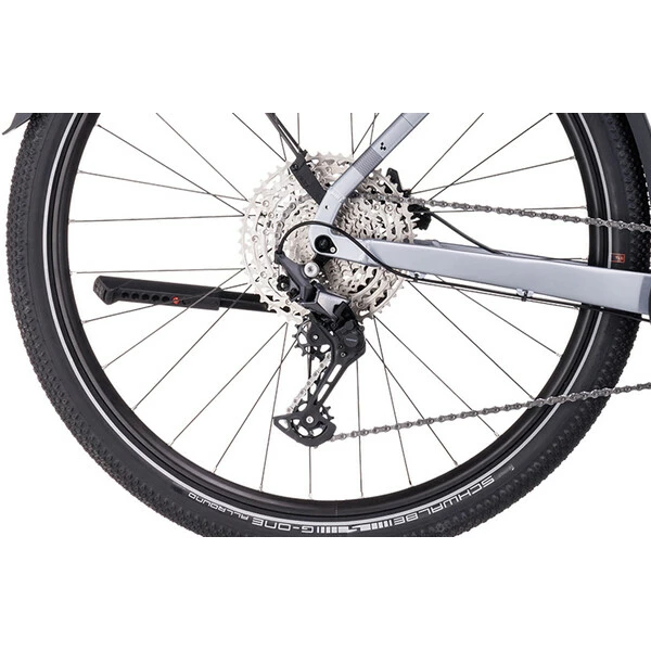 Ce modèle est également équipé d’une transmission Shimano Deore 12 vitesses aussi fluide que fiable et de puissants freins à disque hydrauliques Shimano vous garantissant un contrôle de tous les instants, quelles que soient les conditions météorologiques. Enfin, sa fourche suspendue X-Fusion MIG32, sa tige de selle suspendue et ses pneus Schwalbe G-One ultra roulants, offrent le confort et l’adhérence nécessaires pour prendre confiance en soi.