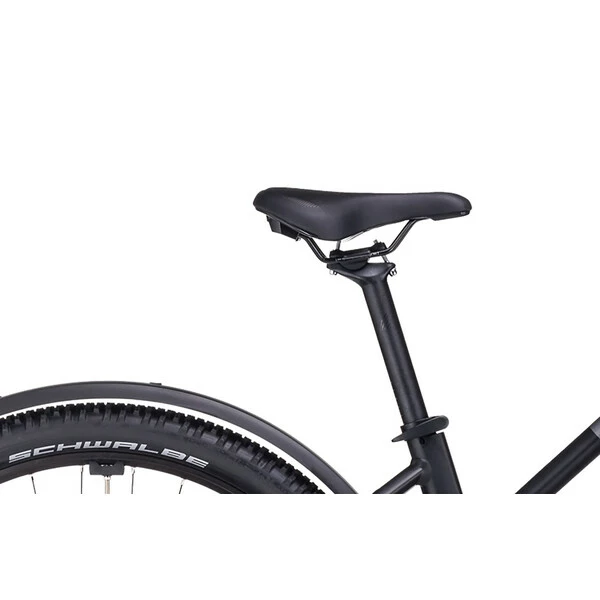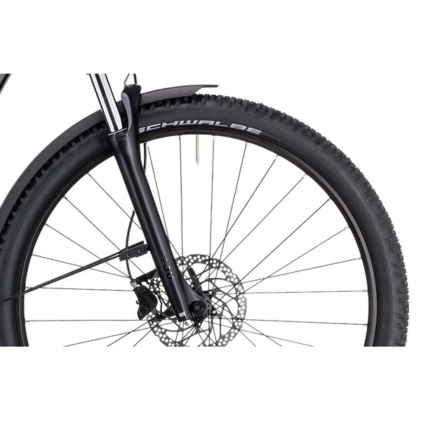Ses pneus Schwalbe, robustes et adhérents, s’associent à la fourche suspendue Suntour pour vous offrir une traction et un pilotage sécurisés, fiables et confortables quelles que soient les conditions. Sa transmission Shimano 9 vitesses procure une vitesse adaptée à tous types de profil, tandis que ses freins à disque hydrauliques Shimano MT200 possèdent toute la puissance nécessaire pour un freinage efficace.
