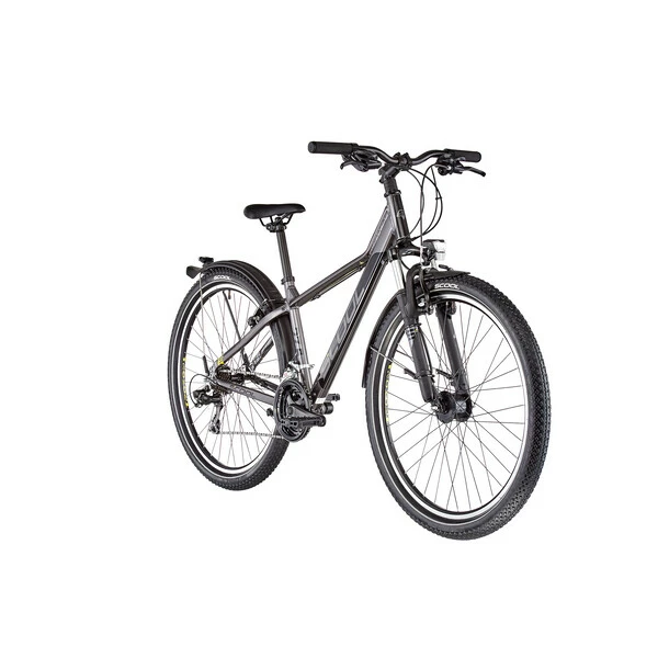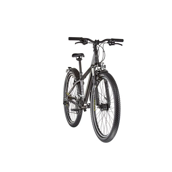 Il est ici équipé de roues aluminium 27,5 pouces garantissant un très bon rendement, une plus grande stabilité à vitesse élevée et une meilleure capacité de franchissement (trottoire, racines, …) associés à des pneus accrocheurs et sécurisants. Le cadre en aluminium autorise pour sa part une position assez relevée procurant un excellent confort et assurant une grande stabilité et une sécurité maximale. Le TroX sera à l’aise dans les petits chemins comme sur la route. Avec son éclairage LED, ses garde-boues et sa béquille, il embarque tout le nécessaire pour rouler en toute sécurité.