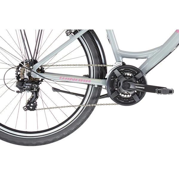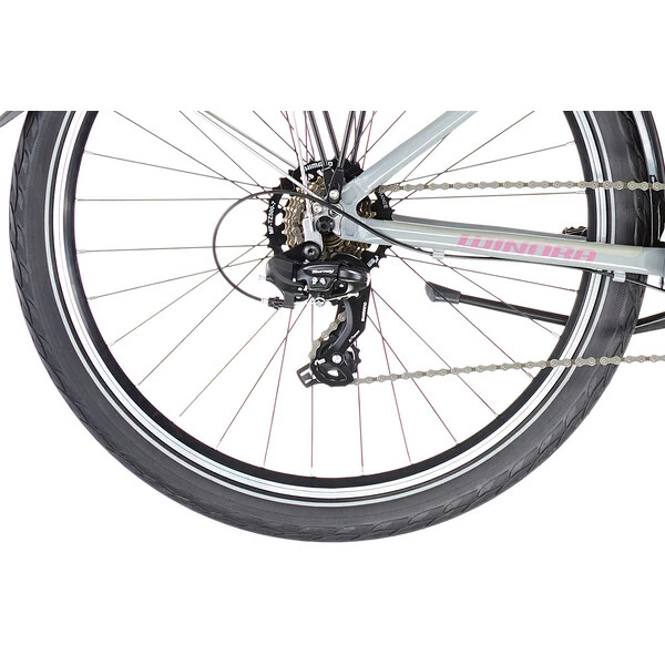 Côté équipement, ce vélo possède tous les accessoires pour les jeunes cyclistes. Il est dôté de freins V-brakes puissants et facilement controlables, et d’un groupe de vitesse Shimano à 3×7 vitesses, facile à utiliser. Son cadre en aluminium 6061 est aussi résistant qu’un modèle adulte, mais avec un poids adapté à l’enfant.