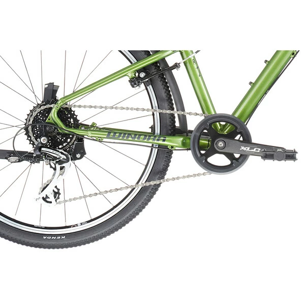 Côté équipement, ce vélo possède tous les accessoires pour les jeunes cyclistes. Il est dôté de freins V-brakes puissants et facilement controlables, et d’un groupe de vitesse Shimano à 8 vitesses, facile à utiliser. Son cadre en aluminium 6061 est aussi résistant qu’un modèle adulte, mais avec un poids adapté à l’enfant.