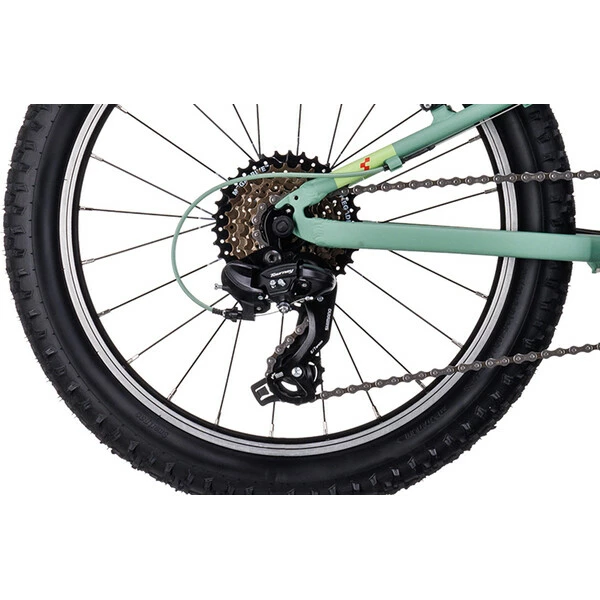 Côté équipement, l’Acid possède tous les accessoires pour les jeunes cyclistes. Il est dôté de freins V-brakes puissants et facilement controlables, et d’un groupe de vitesse Shimano à 7 vitesses, facile à utiliser. Son cadre en aluminium 6061 à traitement thermique est aussi résistant qu’un modèle adulte, mais avec un poids adapté à l’enfant.