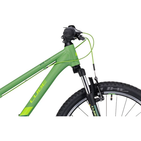 Côté équipement, l’Acid possède tous les accessoires pour les jeunes cyclistes. Sa fourche suspendue Suntour améliore le confort et le contrôle du vélo sur les surfaces accidentées. Les freins V-Brake sont puissants et faciles à contrôler grâce aux leviers conçus pour les petites mains et à un modulateur de puissance à l’avant.