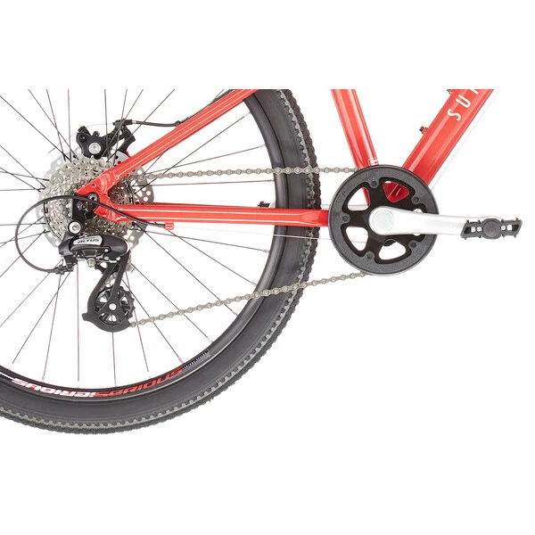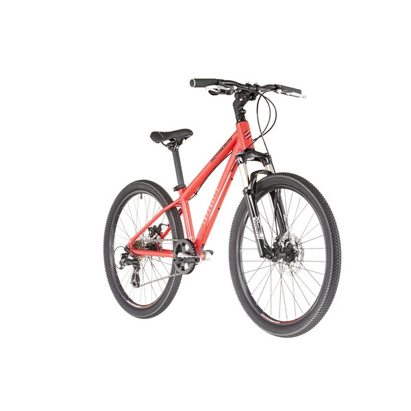 Conçu autour d’un cadre en aluminium, à la fois léger, robuste et maniable, il est équipé d’une transmission Shimano 7 vitesses pour les petites ascensions, de pneus 24″ accrocheurs, d’un guidon junior et des roues solides : un vrai vélo de grand ! Il présente des freins à disques mécaniques puissants pour un contrôle et une sécurité sans faille. De plus, il est accompagné d’une fourche suspendue Suntour SF16 à air pour un réglage précis par rapport au poids.